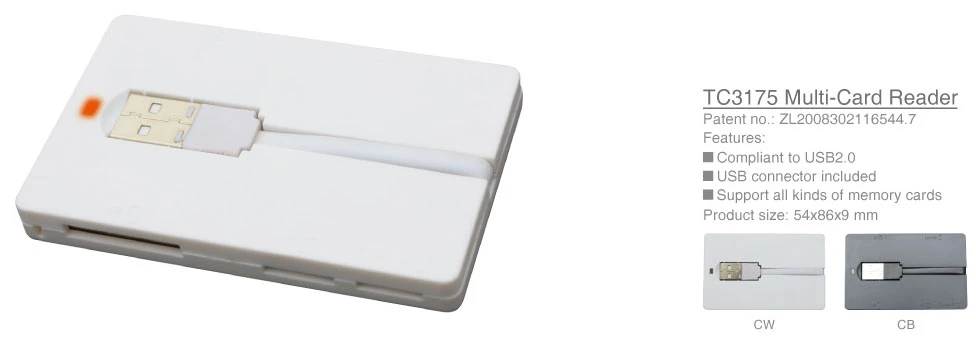 ITEM: TC3175 Multi-Card Reader * Compliant to USB 2.0 * USB connector included * Support